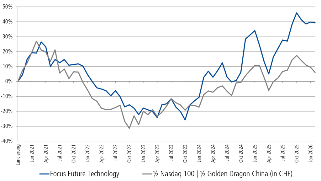 Es wird ausschliesslich in Aktien investiert, welche im Zuge der technologischen Disruption künftig eine tragende Rolle einnehmen werden. Das Anlageuniversum ist global, wird sich aber vor allem auf die USA und Asien, die beiden Zentren der disruptiven Technologien, fokussieren.